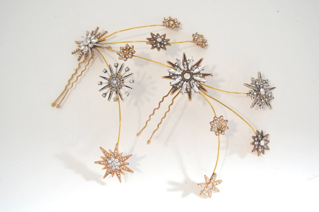 Y por último tenemos un tocado compuesto por tres horquillas de estrella, que al no ir unidas por hilos de latón a modo de constelación, las que querido dar el nombre de Perseidas en honor a la famosa lluvia de estrellas fugaces que podemos ver todos los veranos en nuestro cielo nocturno coincidiendo con la festividad de San Lorenzo.